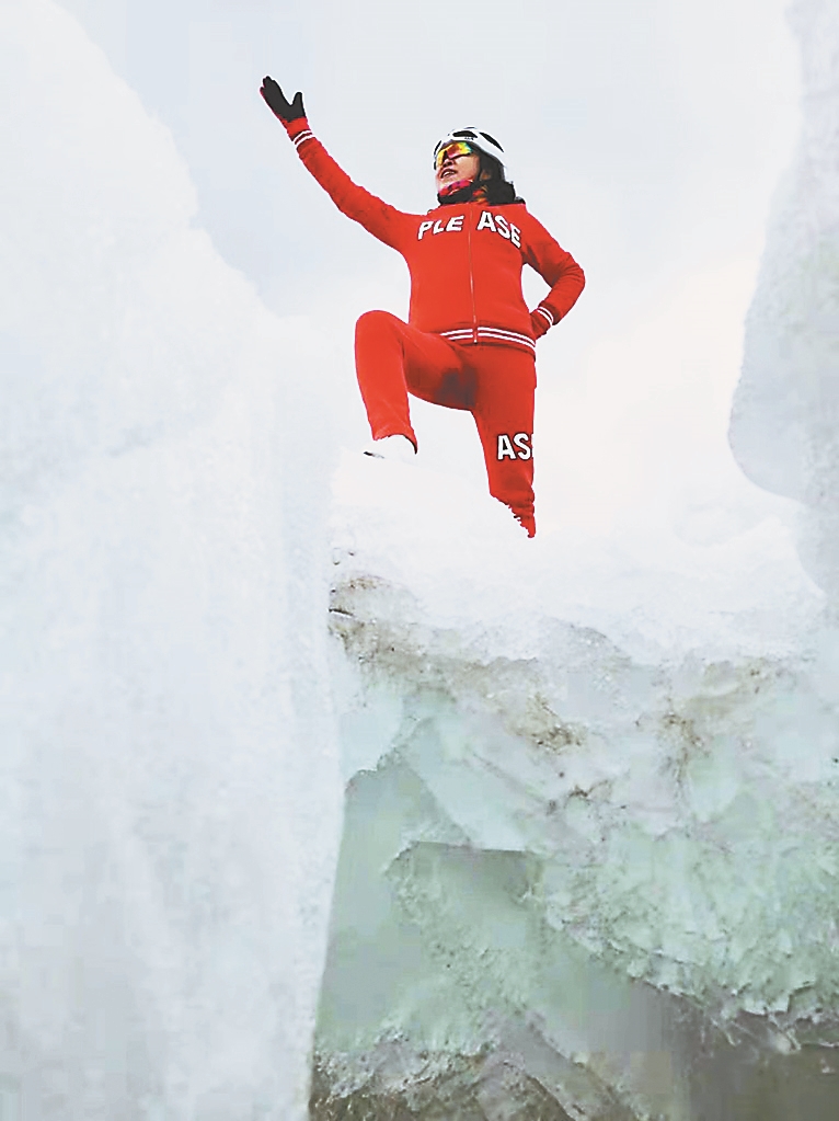 “名字”的图片基本都是躺在冰上拍的,还有意回避掉了远处的楼房,这样就拍出了“钻石海”的感觉。他说:“躺在冰上拍,这个角度出片,女生最好穿厚一点儿。”