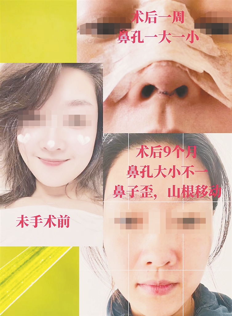 生活报讯 (记者郭登攀 时继凯文/摄) 近日,绥化市的王女士向本报记者反映,她在哈尔滨美仁邦医疗美容门诊部做鼻子的驼峰鼻综合矫正术后,不但没有变美,反而鼻梁变歪、鼻孔一大一小。22日,记者对此事进行了采访。