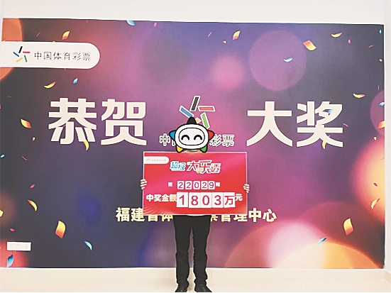 生活报讯 (许褚) 3月19日,体彩大乐透第22029期开奖,厦门同安购彩者郭先生以一张复式追加票,中得1注追加一等奖,奖金合计1803.2万元。