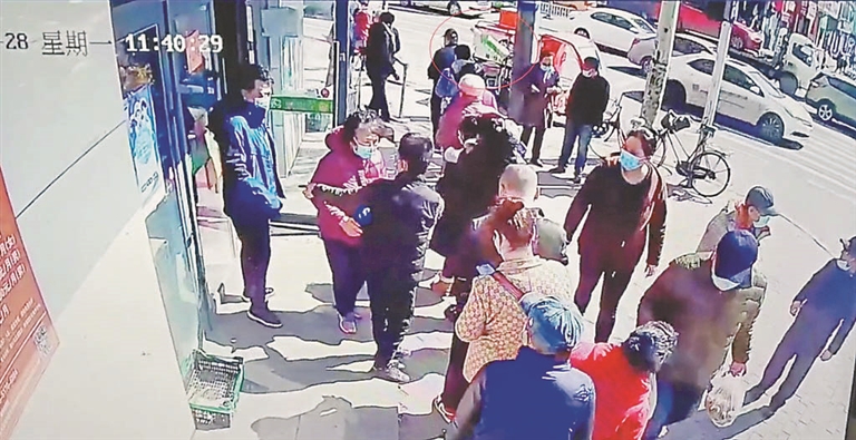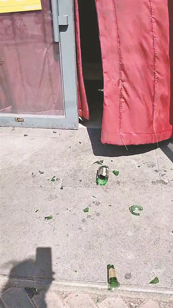 6日上午,生活报记者来到太古街与南十四道街交口的这家超市门前看到,很多市民排队扫码进入室内购物。据伤者的侄子曲先生介绍,3月28日11时40分,他姑姑抱着他二岁的儿子,在超市门前排队扫码准备进入,突然从高空落下来一个啤酒瓶子,砸在姑姑头上,当时就流了很多鲜血,啤酒瓶子坠地后碎了。随后他赶紧拨打110和120报警电话,伤者被送到医院进行处理。