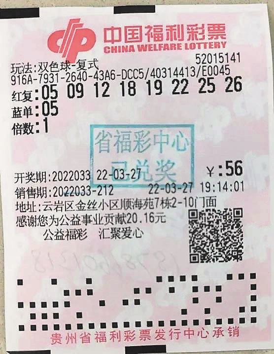 3月27日晚,双色球进行第2022033期开奖。当期,贵州省贵阳市云岩区金丝小区顺海苑7栋2-10门面第52015141号福彩站售出的一张8+1复试票收获当期1注一等奖、12注三等奖、15注四等奖,共计获得奖金689万元。