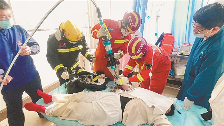 生活报讯 (记者郭登攀) 日前,大庆一名女子手部被绞肉机卡住,经过消防员40分钟的紧急救援,女子手部被成功取出。