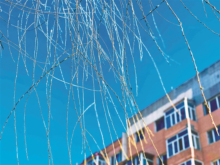 生活报讯 (记者李丹文/摄)近日,随着气温逐步回升,冰城柳树发芽了。哈市园林专家介绍,在众多园林绿化树种中,柳树一马当先,是春季枝条最早泛绿的树种。