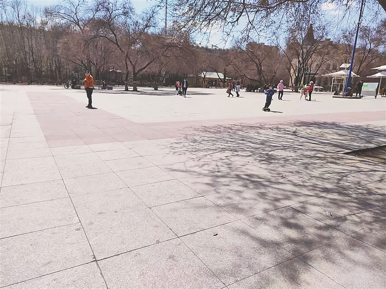 13时,记者来到距步行街200多米的呼兰西岗公园,公园里有两处面积非常大的休闲广场,一些家长带着孩子在放风筝,一些市民在散步,地面上看不到垃圾和破损路段。公园整体非常干净整洁。