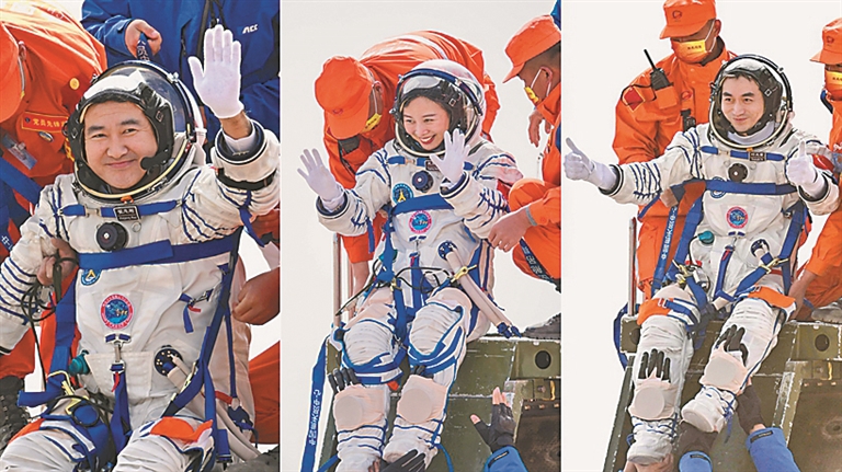 神舟十三号载人飞船于2021年10月16日从酒泉卫星发射中心发射升空,随后与天和核心舱对接形成组合体,3名航天员进驻核心舱,进行了为期6个月的驻留,创造了中国航天员连续在轨飞行时长新纪录。航天员在轨飞行期间,先后进行了2次出舱活动,开展了手控遥操作交会对接、机械臂辅助舱段转位等多项科学技术实(试)验,验证了航天员长期驻留保障、再生生保、空间物资补给、出舱活动、舱外操作、在轨维修等关键技术。