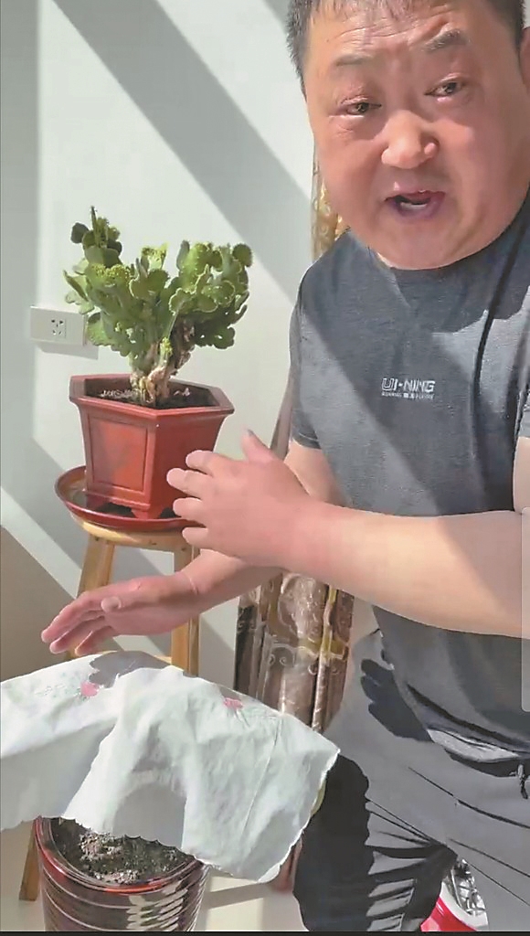 就连窗台前的盆栽,也被老妈盖了个手绢,因为担心绿植叶片太大,落灰不好擦。在视频里,孙小磊笑着问老爸:“它不需要阳光吗?”“可能需要吧,咱也不敢问呐。”“饭桶孙”怯怯地回答。