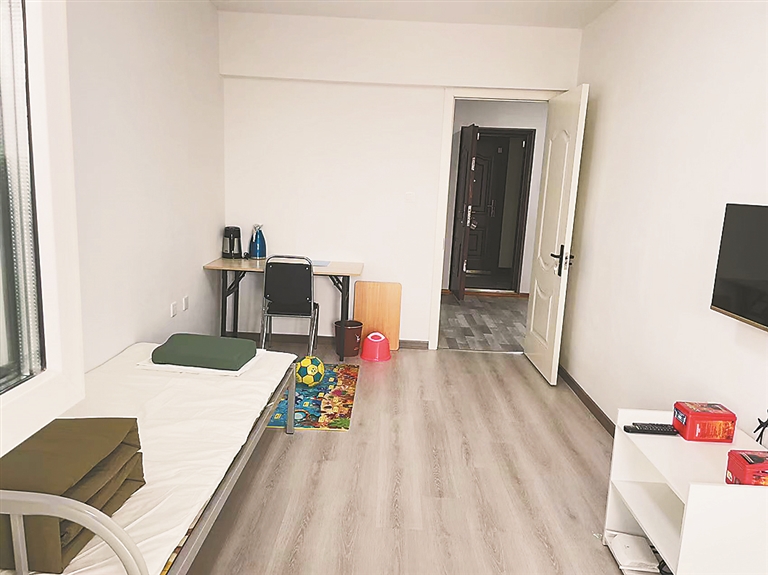 走访中,记者了解到,为了适应各类群体,健康驿站内还设置了亲子房、老人房及无障碍房间。在亲子房内,记者看到这里不同于普通房间,房间内设置了两张床、儿童地垫及玩具。“为极力提高隔离人员的舒适感,减少排斥情绪,我们在每个楼层设置母婴房、老人房及无障碍房间,在标准化配备的基础上加设陪护床位、玩具、轮椅缓坡及坐便助理装置,让这个‘临时的家’充满暖暖的爱。”该项目相关负责人介绍。