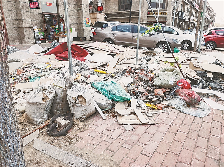 住在松木街附近的王先生说:“已经有半个多月了,他们商服装修的建筑垃圾都堆在人行道上,把道都给堵了。占了好几个停车位,走路也不方便。”19日,帮办记者来到松木街,在一家药店门前看到一大堆建筑垃圾和一些零散的生活垃圾,占据大半条人行道。该路段停车位十分紧张,建筑垃圾堆至少占据了三个停车位空间。记者看到,部分商户随意将一些生活垃圾丢在个垃圾堆里。
