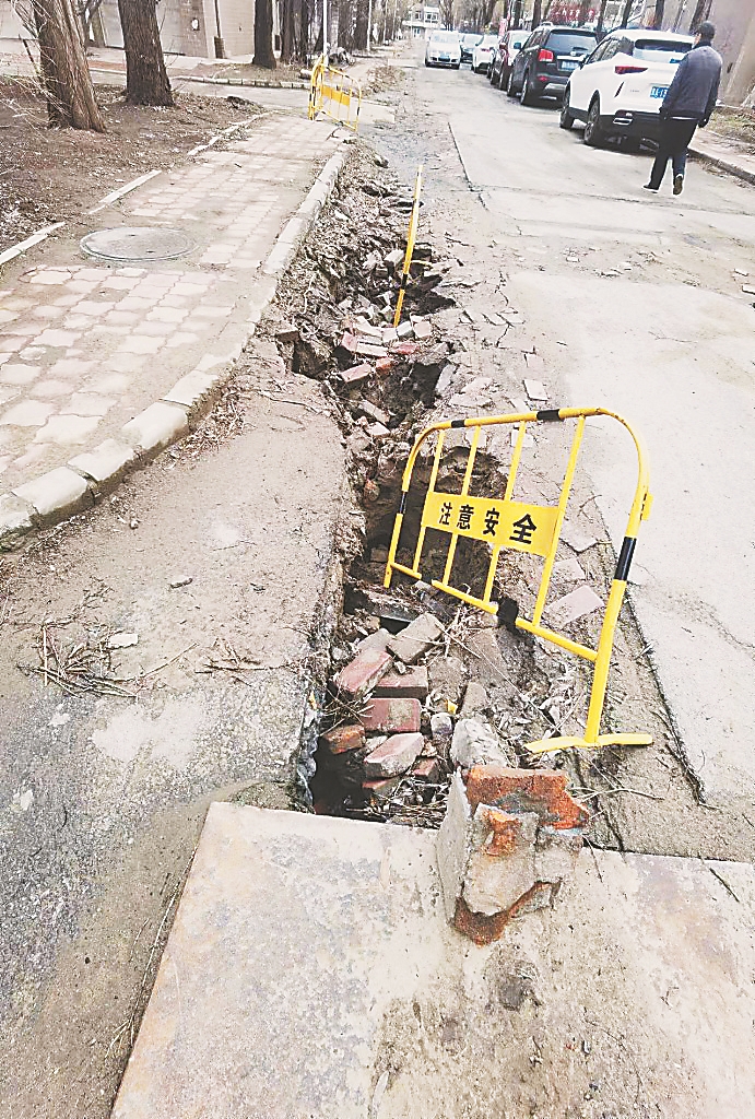 生活报讯 (帮办记者肖劲彪) 21日,家住哈市松北区世纪花园C区的业主王先生反映,小区内的道路出现塌方,因去年自来水改造没有及时回填,希望尽快解决塌方问题。