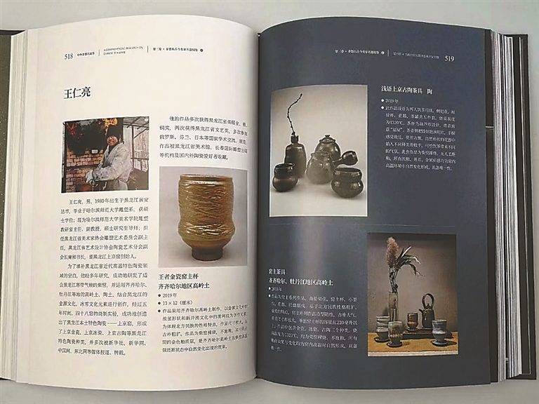 短短几年,上京窑的佳作,便得了官方认可和名家力荐。2019年,由中国工艺美术协会组织编撰的、有史以来第一部大型茶器具工具书《中华茶器具通鉴》出版,其中《古今名家名器卷》介绍了王仁亮和上京金瓷,这也是省内唯一入编的陶瓷艺术品。