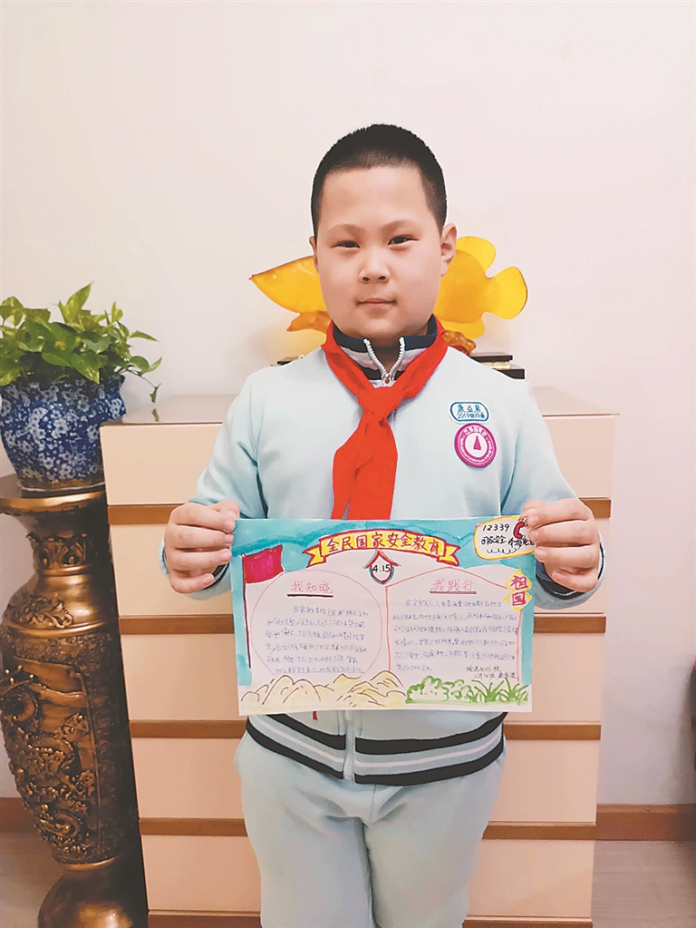 小记者 哈尔滨美加外国语学校小学部 三年四班 康益晨:国家安全像一座大山,矗立在我们每个人的面前,保护着人民的生命财产安全,使人民无忧无虑地过着幸福生活,我作为新时代的少先队队员,要有责任有担当,牢记国家安全在我心中,居安思危,做国家安全的小先锋。