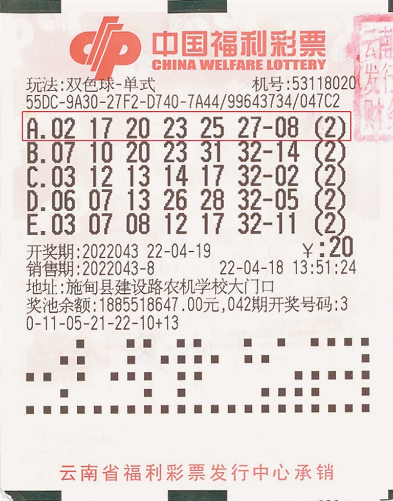 近来,云南彩民于先生(化名)彩运俱佳,好运连连,距昆明2022031期的5507万双色球大奖仅时隔一个月,又中出1343万大奖。