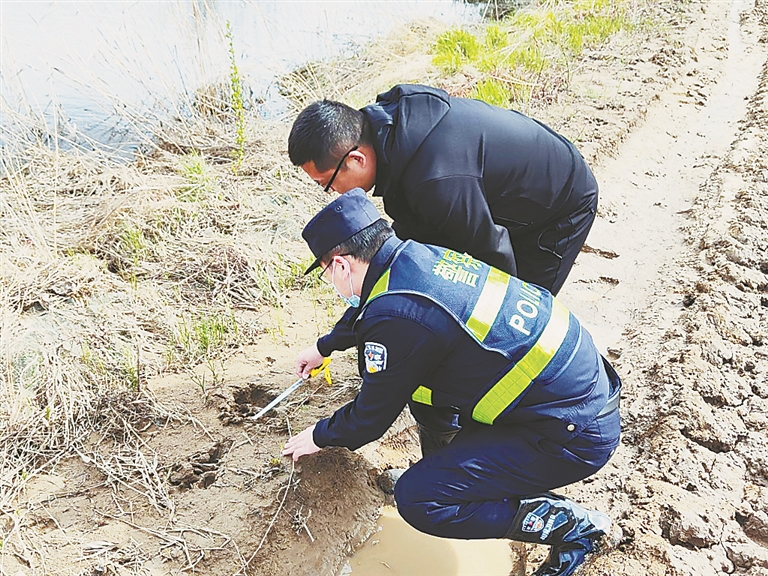 民警到达现场后,经了解情况得知,珍宝岛乡宝丰村村民汪某在村东南侧珍宝岛湿地保护区内放牛的时候,突然发现有一串大型动物的脚印,这名村民立即向珍宝岛边境派出所和湿地管理部门报告。