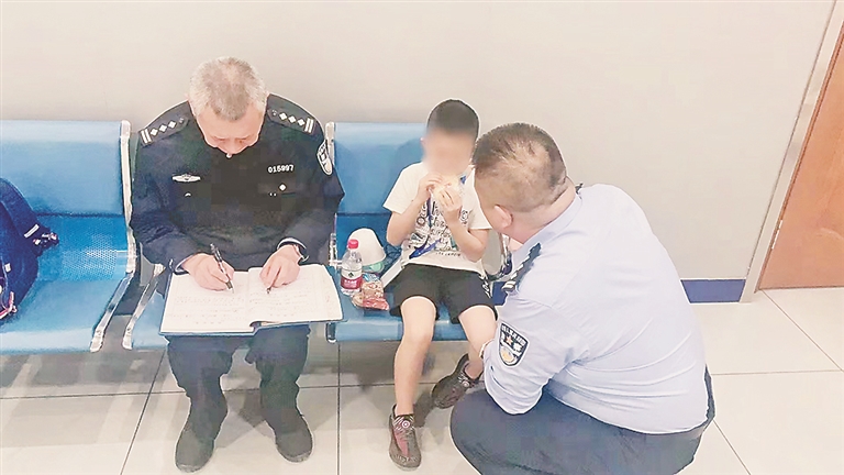 5月21日晚,新华街派出所民警在视频巡查中发现一名背着书包、身着白色短袖、深色短裤的小男孩独自行走在埃德蒙顿路与乡政街交口处。当班指挥长闫峰立刻调度辖区内正在执行巡逻任务的民警赶赴现场了解情况,仅过了几分钟,巡逻民警就将小男孩带回了派出所。