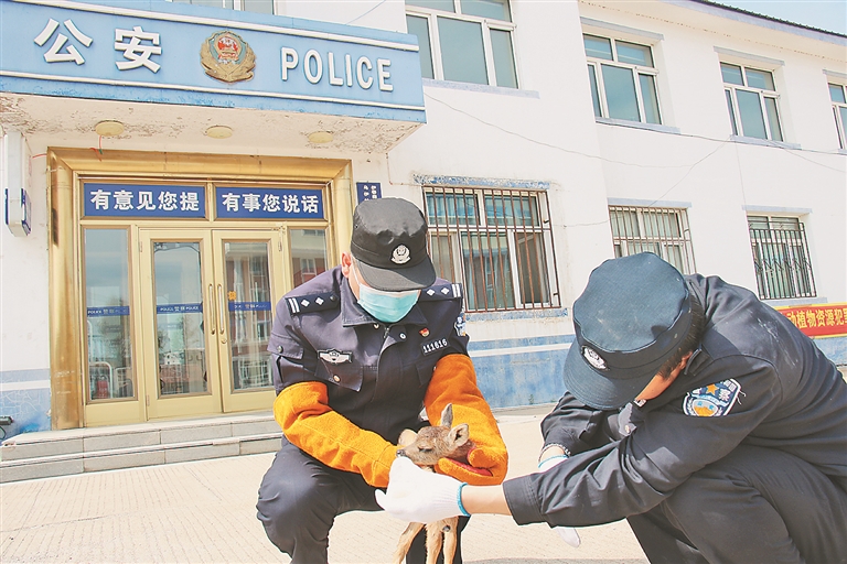 生活报讯 (记者郭登攀 时继凯) 一只野生狍子幼崽病倒在路边,爱心人士发现后迅速报警。辖区警方立即展开对这只小动物的救助,这只幸运的野生小狍子才及时脱离危险。