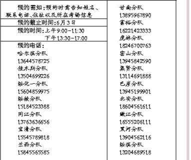 自活动报道以来,各地考生纷纷拨打爱心热线预约车辆,截至5月31日,哈尔滨分队对接考生5名、嫩江分队对接考生1586名、集贤分队对接考生120名、黑河分队对接考生73名、兰西分队对接考生5名、宝清分队对接考生8名、同江分队对接考生4名、社区推送考生十多名、绥滨分队对接考生89名、北安分队对接考生28名。“雷锋车队”各志愿服务分队剩余送考车辆不多,请需要用车的考生务必提前打电话预约。