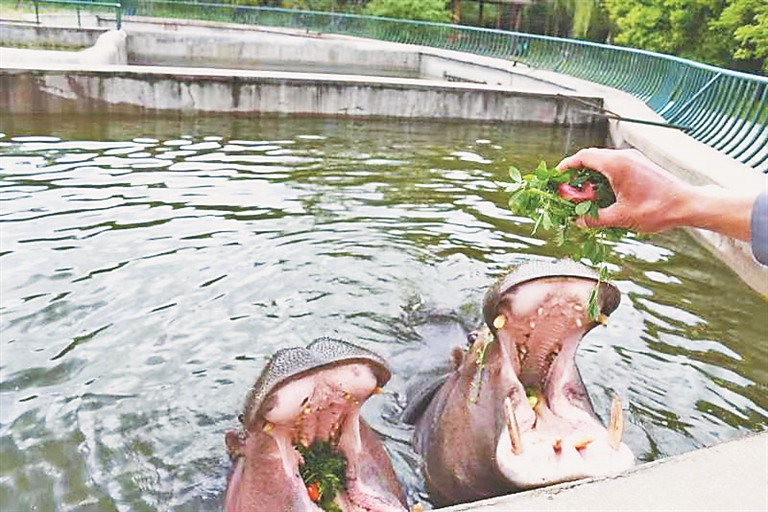 草食动物们的粽子最为特殊。为了防止草食动物把绳子误吞下去,长颈鹿、河马的粽子以树叶、苜蓿草做粽叶、连捆粽子的绳子用的都是树皮、草绳,全部可食用。长颈鹿、河马们完全没有剥粽子皮“粘手”的烦恼,长颈鹿低头一口一个,吃着树枝上的粽子十分惬意;河马大嘴一张,粽子来了整个吞,吃起来倍儿爽。