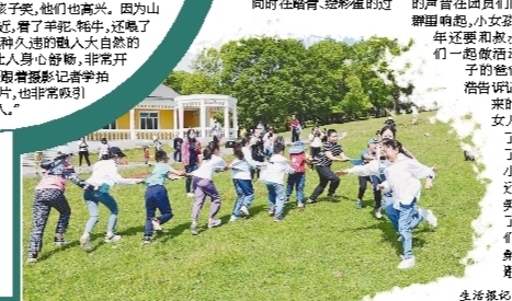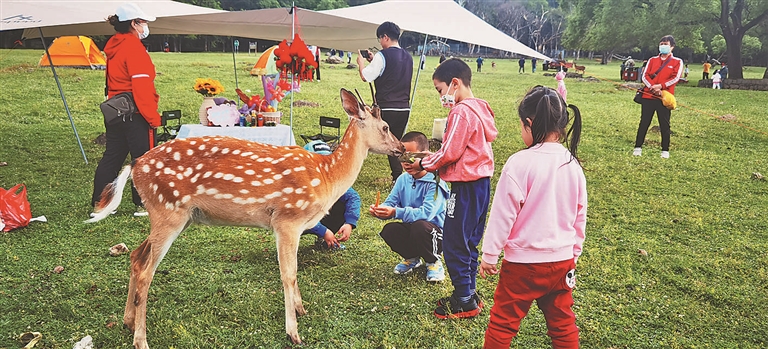赵婧说,活动中,女儿喂小鹿、参与旱地划龙舟,因为太小没敢挤进人群“踩气球”,但在小腿上绑着气球,看别人踩得欢乐,她也“呵呵”笑出了声!老人看孩子笑,他们也高兴。因为山路平坦,漫步到草食动物园附近,看了羊驼、牦牛,还喂了梅花鹿。“这种久违的融入大自然的感觉,让人身心舒畅,非常开心!跟着摄影记者学拍大片,也非常吸引人。”