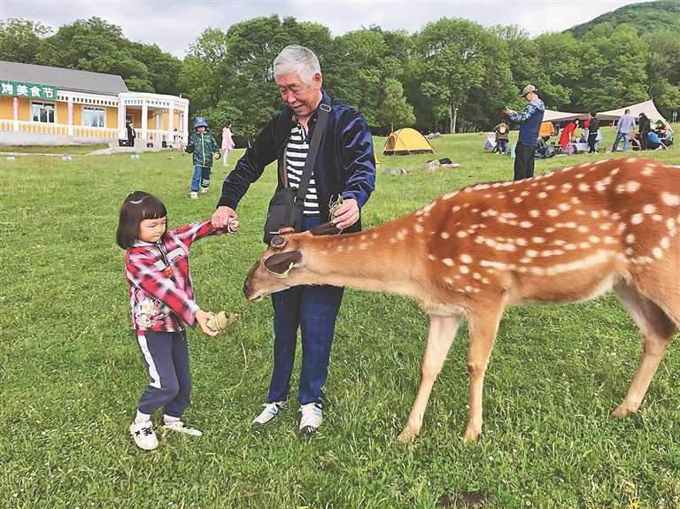 孩子有丰富多彩的活动,老人也有足够的时间漫步、看风景,这是生活报带大家在森工平山皇家鹿苑“花式”过端午的亮点之一。赵婧一家,是其中“最有代表性”的家庭。作为此行“家庭主力”,43岁的赵婧带着不满4岁的女儿和71岁的父亲、69岁的母亲一起出游。女儿是团员中年龄最小的;父亲是团员中年龄最大者之一。“上有老、下有小,想让一家人都能玩得开心,是一件挺难的事。”赵婧说,这次跟着生活报到森工平山皇家鹿苑过端午,这个难题彻底解决了,一家人玩得都很开心,“特别好,比想象的更好!”