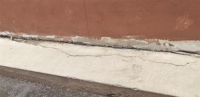 针对一楼与地面夹角的散水坡下沉开裂问题,这位工作人员表示,首先是冬季施工时不满足条件造成的,此次复工后也将一并进行维修。其次,该小区地理位置临近江边,土质容易造成下沉,如果日后再次下沉开裂,施工方在质保期内将对其维修。