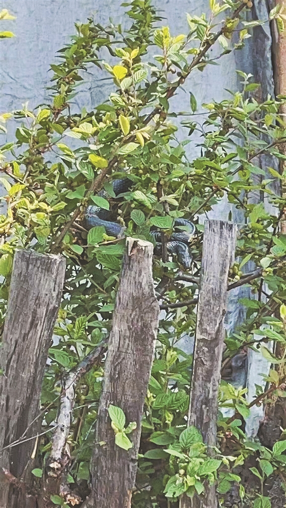 生活报讯 (记者史天一) “喂,110吗?我家院里的树上蜷缩着一条大蛇,请你们帮忙来处理一下吧。”日前,牡丹江东宁市公安局老黑山边境派出所接到村民姚某报警称,其家中来了一位“不速之客”,请民警帮助。