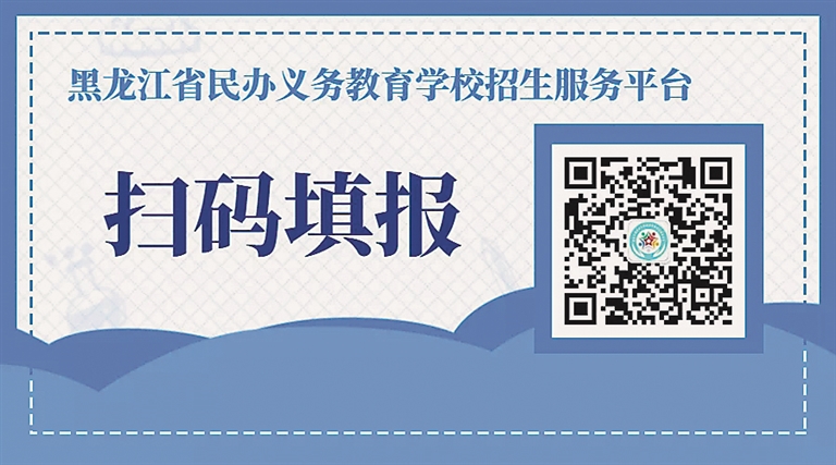 识别二维码,关注公众号,点击下方菜单“报名入口”,进入“黑龙江省民办义务教育学校招生服务平台”。