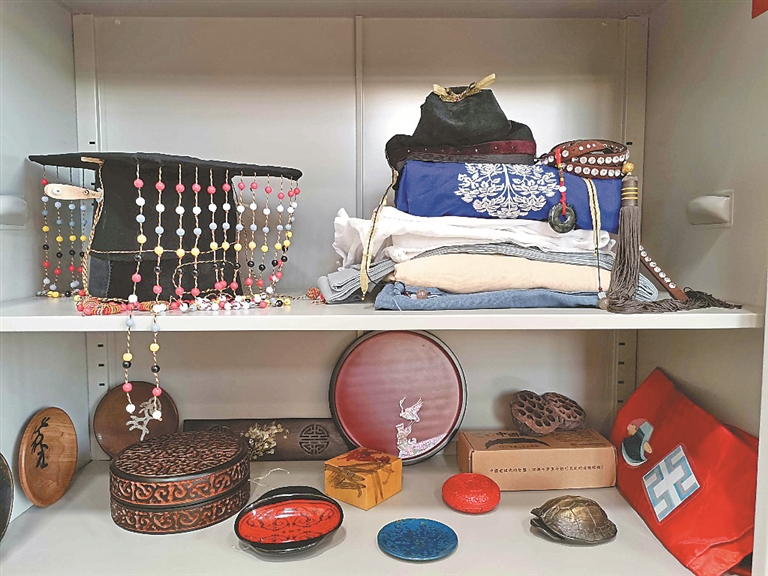 大庆第四中学的美术老师郭炜,已经从教24年了。她是重庆人,毕业于南京师范大学美术学院。在美术教研室里,她有个“百宝箱”,打开柜门,教具琳琅满目。漆器、衮冕、鲁班锁、团扇、卷轴画、虹桥模型、斗拱……郭炜把课本上的一张张图片,变成了学生看得见、摸得着的实物。