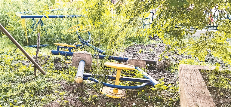 生活报讯(记者梁晨文/摄)近日,哈市道外区东升江畔小区业主李女士给本报热线打来电话称:“自从江畔路改造,小区健身器材被拆卸后,就一直堆放在小区后院的绿地内,已有近2年的时间了。”对此,生活报记者进行了走访。