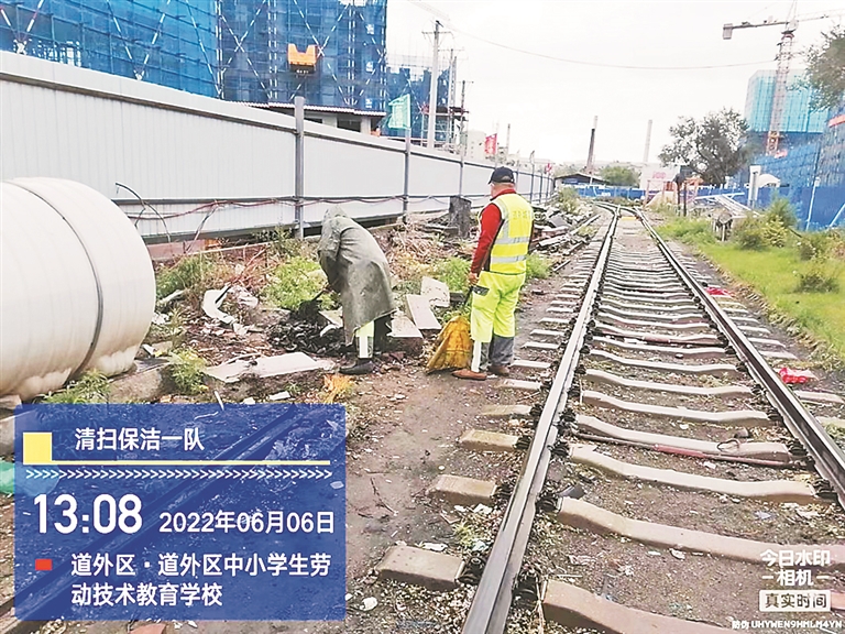 自6月6日起,道外区城管局安排作业人员对辖区内铁路沿线积存垃圾情况进行全面摸底排查,针对垃圾量多、清理难度大的点位进行专项治理。具体清理点位包括:三棵树车辆段铁路沿线、三机街哈牡佳高铁围挡外铁路沿线、望江桥街铁路沿线、哈佳高铁桥下空地、陶瓷大街更新街铁路沿线、八区街铁路沿线等10余处点位。同时,在八区街、八区三巷两处铁路沿线对裸露土地进行绿网苫盖,累计铺设108片绿网。
