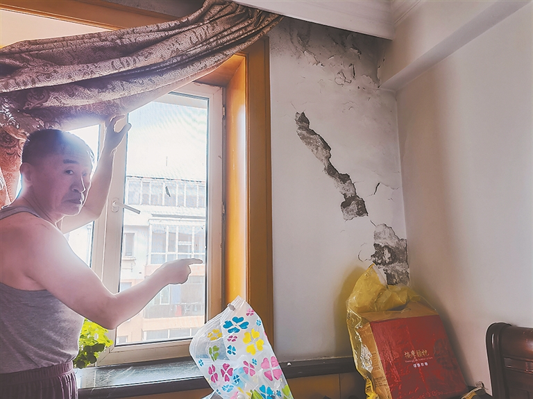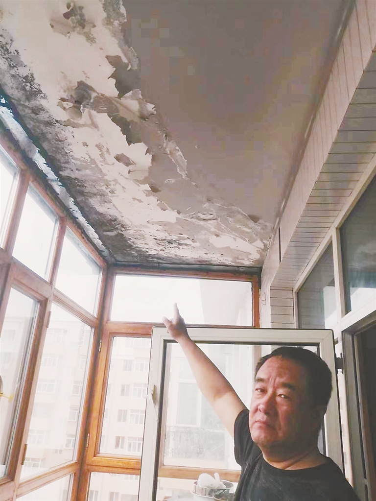 对于顶层居民家漏水的问题,负责该小区的黑龙江涵宇物业公司负责人也很头疼,据其介绍,小区一共有4栋居民楼,顶层居民40多户,家家都存在屋顶漏水的情况。