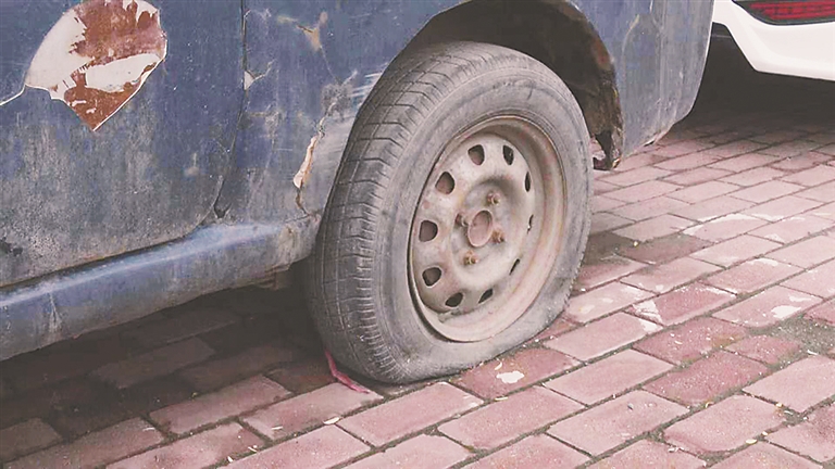 10时许,民警又在三合路一处人行道上发现了外观破旧的黑LHW11*号面包车,该车的右后方轮胎已处于亏气状态,车辆的座椅、方向盘、车窗也都十分老化。经查,该车也是3个周期未检验,达到报废标准。执勤民警介绍,目前正是炎热季节,这种车辆长期放置在人行道上,不仅影响市容市貌,而且一旦电路老化很容易引发自燃,具有一定安全事故隐患。随后,民警呼叫附近拖车,依法将该车拖移。