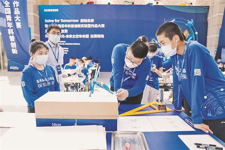 在智慧社区命题大学组比赛中,哈尔滨工业大学、哈尔滨工程大学、东北农业大学等省内多所高校的20支队伍瞄准前沿科技领域,围绕家居生活和社区活动,利用人工智能、物联网等与AIoT相关的技术进行作品设计。未来太空车命题比赛面向中学生,考察学生对科学原理的基本理解以及动手实践操作的能力。赛场上,各组参赛选手在行驶动力支撑、速度、阻力、摩擦力等制约因素下,发挥集体的创造力,现场制作“太空车”模型,并进行爬越障碍物的测试。