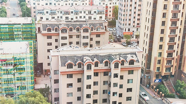 据小区居民和业委会相关负责人介绍,体东名城小区是棚改项目,2012年4月由哈尔滨元盛房地产开发股份有限公司开发建设。小区是在2014年左右进户的,3年后顶楼就开始大面积发生漏雨。小区共有11栋楼,其中5栋高层6栋多层,都有居民反映漏雨。