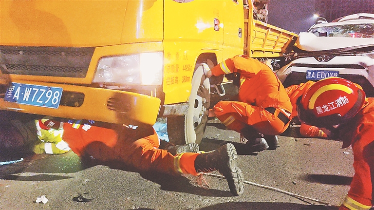 生活报讯 (记者黄迎峰 肖劲彪) 23日21时45分,哈尔滨市消防救援支队指挥中心接到报警称:香坊区进乡街高架桥市区往三环方向发生交通事故,有人员被困,指挥中心立即调派通站街消防救援站出动2辆消防车、10名消防救援人员赶赴现场救援。