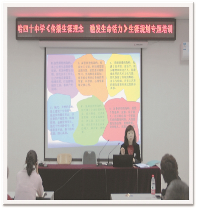 2016年率先启动学生生涯规划工作,建立“生涯规划指导中心”,打造“生涯规划”实训室,开设生涯规划必修课程,建立导师制、开展生涯规划特色选修课、深化学科融渗课堂,创设“生涯规划”追梦社团,组织“四十中家属工作坊”。为学生提供了展现自我的舞台,让学生了解自身的特长和兴趣,明确自己的发展目标,定位自己的人生角色。在学校成立咨询机构,开展自我探索辅导、专业职业辅导、志愿填报辅导等几方面的咨询辅导,为新高考选课走班提供指导和助力。