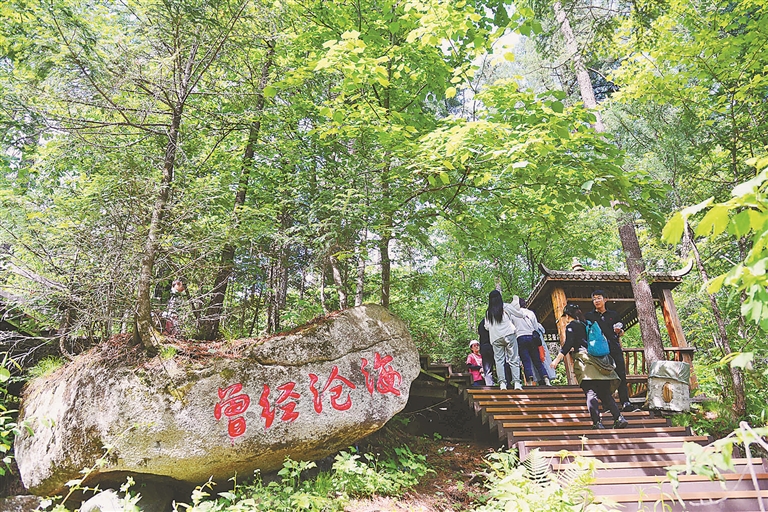 顺着“回龙坡”往下走,就是中循环的下山路。路过一片石海,听说这里原来一棵树都没有,但慢慢地,风吹来松针,鸟衔来种子,这里才又重新生意盎然。这就是大自然的神奇造化,她,才是这山林中草木虫鸟的“妈妈”。