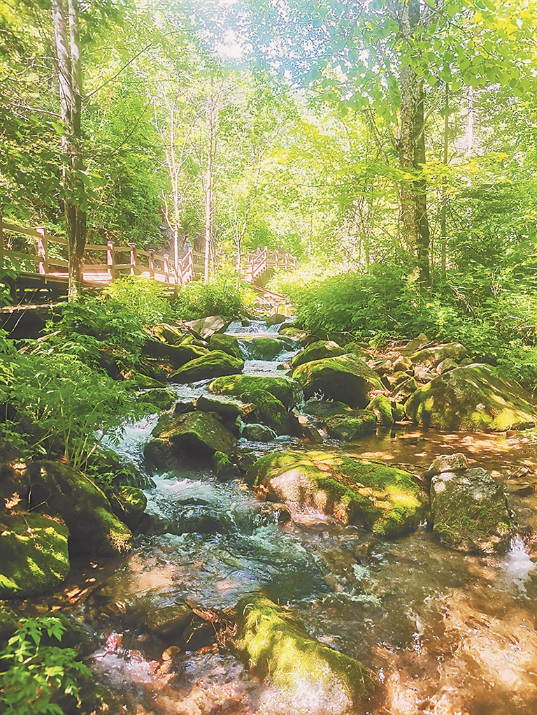 头一天,我们走的是中循环。在进山溪水处的大水车前,正好看到一个刚刚下山的女子,我们问她感觉如何,她连说太好了,“尤其是这新修的栈道,走起来真是太舒服了!”她说她网名“竹林”,是来自佳木斯的一个导游,从2014年开始,每年都要来这里好多趟,领略过妈妈顶不同季节的美。妈妈顶,于她而言,是工作,更是生活。