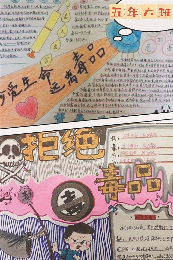 新发中心校召开了以“敬畏生命 远离毒品”为主题的线上主题班会,同学们学习和了解禁毒常识,精心设计禁毒手抄报,增强了禁毒防护意识。