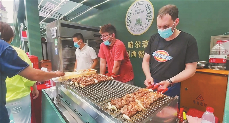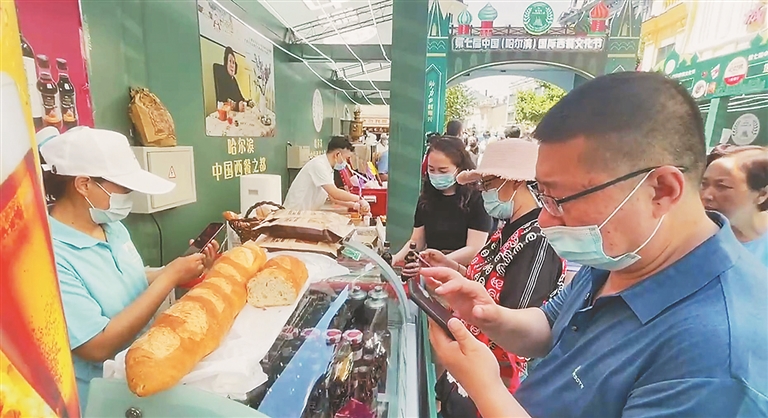 记者从哈尔滨市商务局了解到,此次西餐文化节活动在中央大街的展览面积达400余平方米,汇聚了马迭尔、波特曼、华梅等25家西餐企业参展。在西七道街的西餐企业展示展销会上,知名餐饮企业的展位更是让大家品尝到了特色披萨、面包、煎牛排等美食,每个展位前都有市民排队购买。