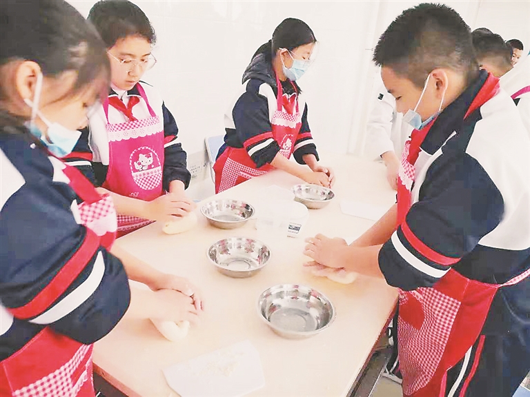 东湖路学校以培养“当家少年”的“齐家之识、爱家之情、立家之责、持家之能、居家之美”为育人目标,立足九年一贯制学校对孩子开展劳动教育的优势,整体规划、一体实施,打造“进阶式劳动课程群”,构建了低、中、高三阶层的“勤·融汇”课程体系,包括“家政、种植、传统手工艺、学科融合、社会实践”五类十二门课程,学校关注劳动课程促学生“动手、动脑、动情”,使学生学会生存、热爱生活、丰实生命。