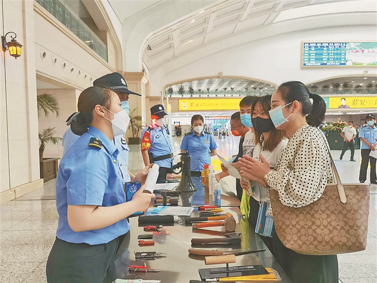 候车厅里 哈铁警方向旅客讲解安检新规