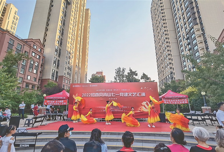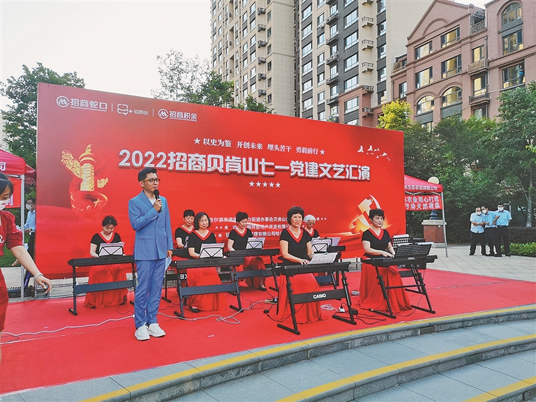 2022年6月30傍晚,哈尔滨市道里区招商贝肯山小区内热闹非凡,业主们吃过晚饭便来到小区广场,这里即将上演一台“文艺大餐”,由“招商局物业管理有限公司哈尔滨分公司”联合“贝肯山社区”、“哈尔滨银开房地产开发有限公司”及小区业主们共同举办“迎七一建党101周年文艺汇演”。