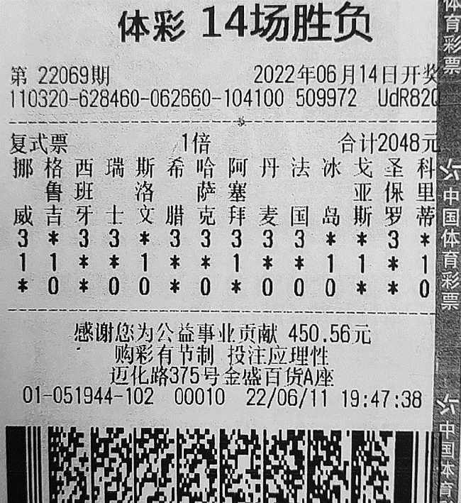 当期足彩由欧国联赛事以及巴甲组成。小周或是双选或是单选将所有场次都拿下,由于采用复式,他除了中出1注一等奖,同时还收获10注二等奖,总奖金达到3358461元。