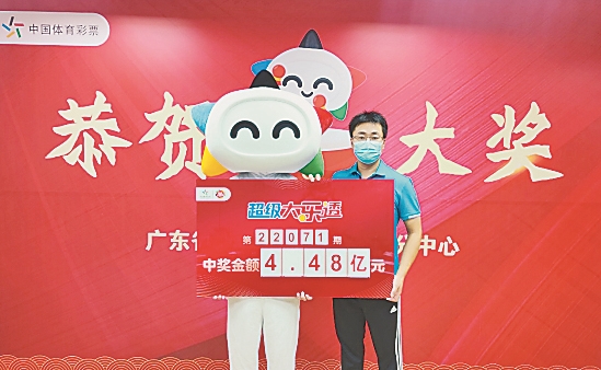 7月5日,陆先生来到肇庆市体彩中心正式领走4.48亿元巨奖。陆先生表示奖金已做好了初步规划,将继续支持体育彩票,支持国家公益事业。