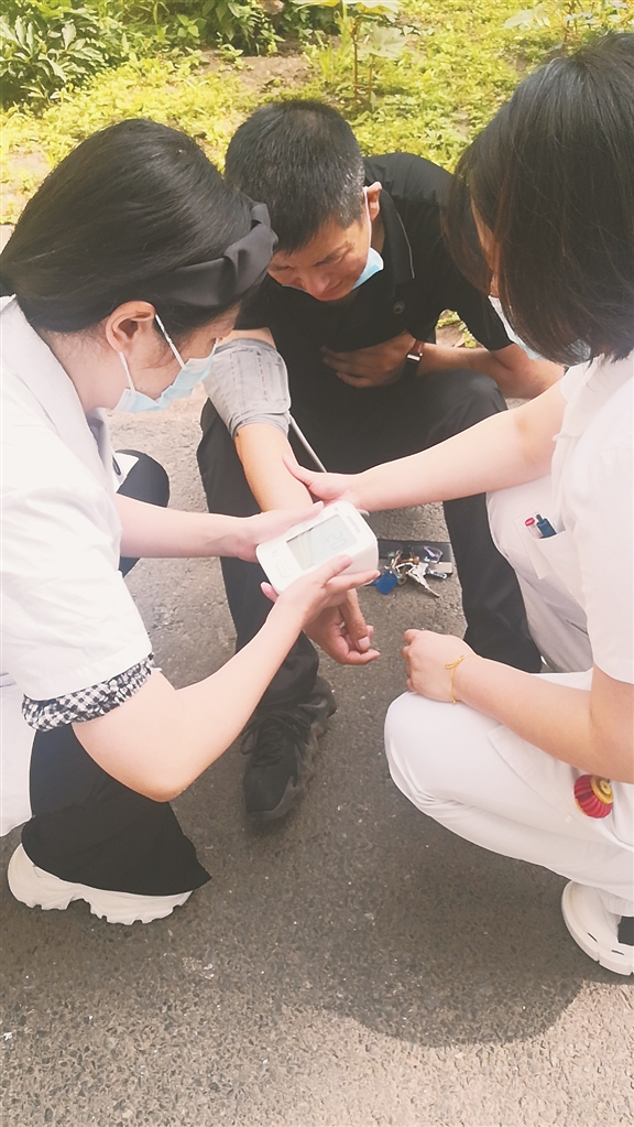 “根据男子的症状和初步检查,我们断定男子为心绞痛发作。”经过一番紧急处置,男子的症状才逐渐缓解,但脸色依然苍白、大汗淋漓。三位医生立即搀扶他进入病区休息,做进一步观察。
