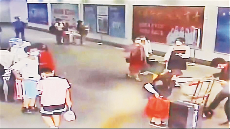 接报后,乘警立即开展调查。有旅客称看到万源站站停时,有一男一女两名旅客推着一个手推车下了车。乘警立即与万源车站派出所取得联系。经查看万源站出站口的公共视频,发现确实有一名身穿黑色西服和一名身穿黑色连衣裙的旅客,拿着绑有灰色蛇皮袋的手推车下了车。