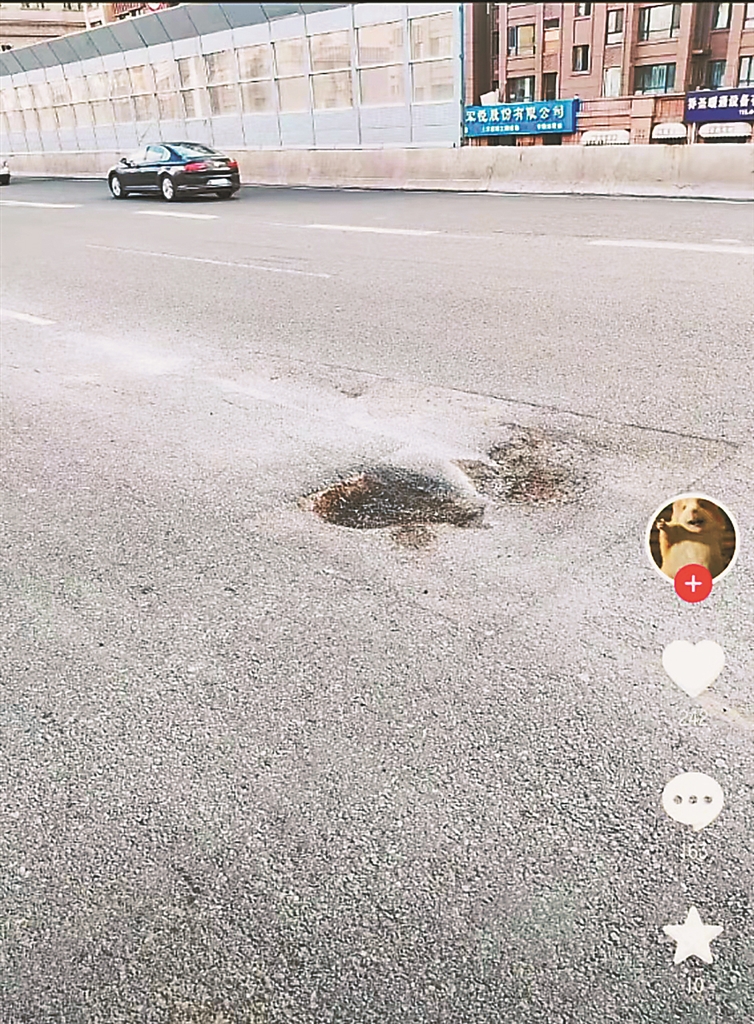 生活报讯 (实习生孙静盈 记者栾德谦文/摄) 近日,有网友在短视频平台报料称:哈市南直路立交桥先锋路往长江路方向最左侧车道有坑,导致三台车辆爆胎。