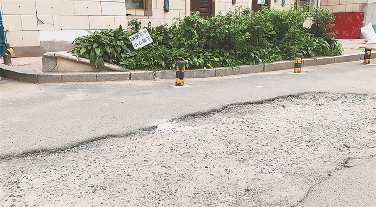 “一下雨就是水泡子,晴天就暴土扬尘,到了晚上视线不好,老人小孩从这儿走多不安全啊!”小区的李阿姨告诉记者,路面变成这样已有半年多了,物业在道路两旁的绿化带中放了“路面不平 小心脚下”的提示牌,但还是经常有居民摔伤、崴脚。居民们找了物业、社区及相关部门反映问题,但一直没解决。