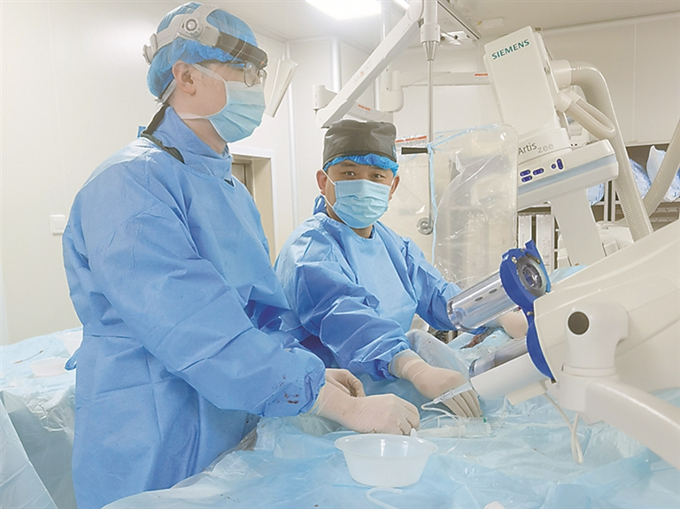 “入院后虽进行了治疗,但病情依然进展性加重,我们发现男子的病情为颅内主干血管闭塞导致,情况十分危急,如果不及时介入开通闭塞的颅内大血管,一旦错过治疗最佳时机,他就可能会出现危及性命等情况。”副主任医师毛铁说。在争得家属同意并签字后,立即对张先生进行介入取栓治疗。