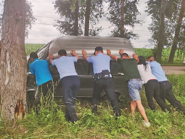 当车辆被拖出来后,驾驶员握着民警的手,激动地说:“谢谢你们的及时救助。”